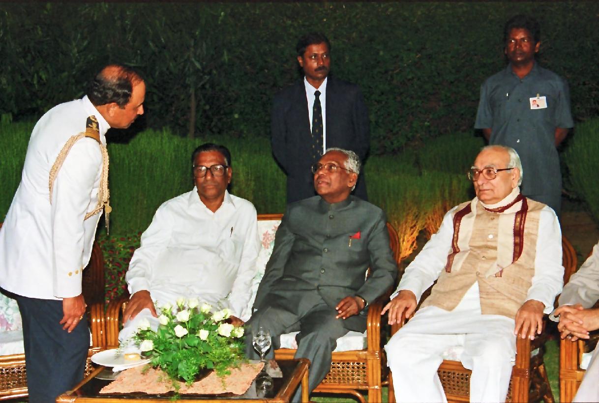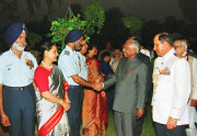 | Caption: | The President of India, Shri K R Narayanan during "At Home" by the Chief of the Air Staff on the occasion of the 65th Anniversary of the Indian Air Force at Air House, 23, Akbar Road in New Delhi on Oct 08, 1997 |