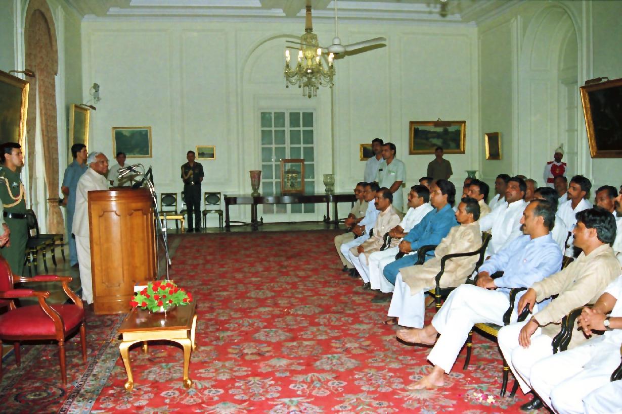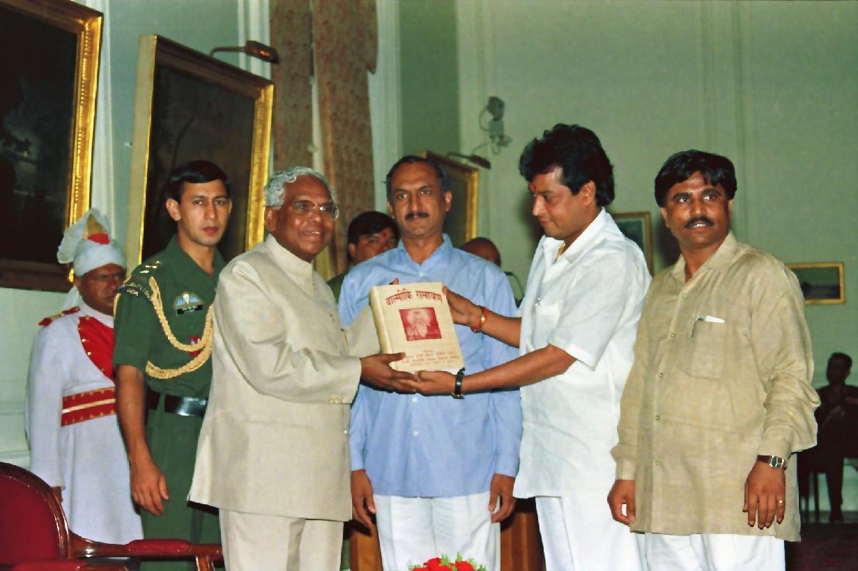 | Caption: | The President of India, Shri K R Narayanan meeting with the Members of Akhil Bhartiya Valmiki Samaj Vikas Parishad and Maharishi Valmiki Prakatotsava Prabandhak Committee Delhi and Shri Ashok Jain Municipal Councillor Delhi with others Members of Valmiki Samaj at the Yellow Drawing Room of Rashtrapati Bhavan in New Delhi on Oct 16, 1997 |