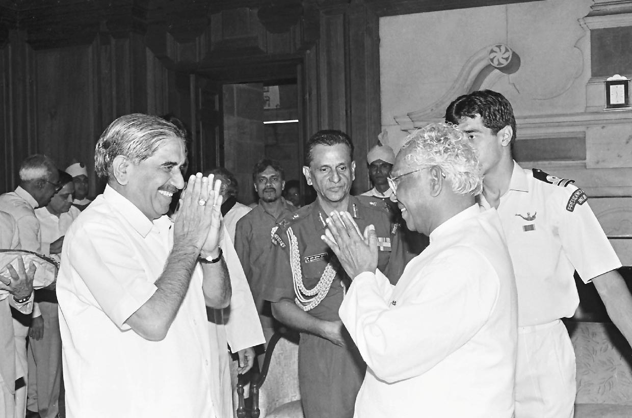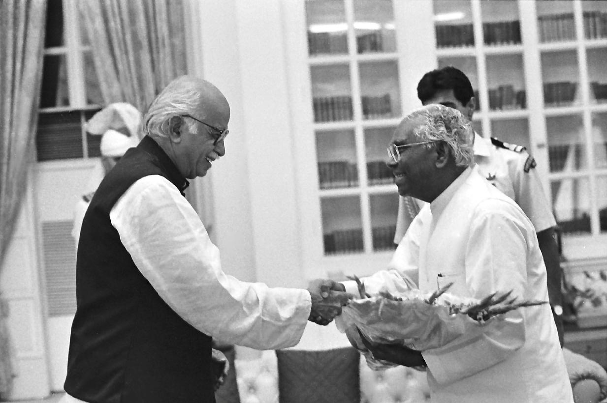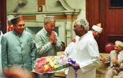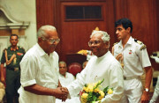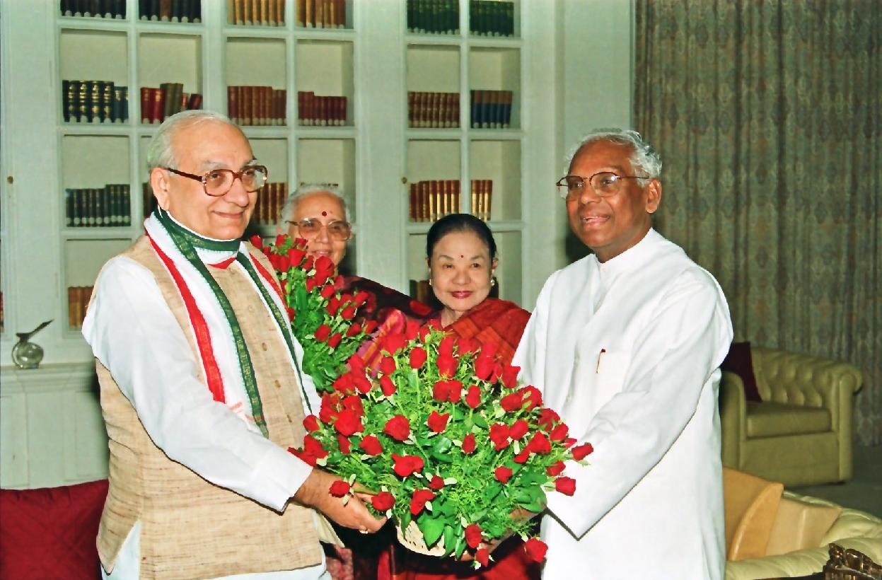 | Caption: | The President of India, Shri K R Narayanan receiving Greeting from the Council of Minister MP's Dignitaries and others at the Morning Room of Rashtrapati Bhavan in New Delhi on Oct 27, 1997 |