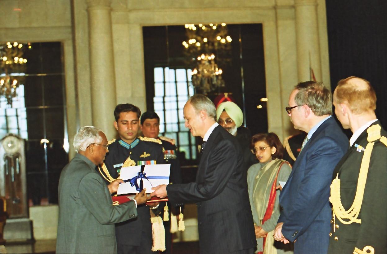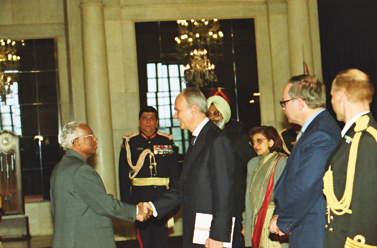 | Caption: | The Ambassador-Designate of Greece to India, His Excellency Mr Efstathios Lozos presenting his credentials to the President of India, Shri K R Narayanan at the Ashok Hall of Rashtrapati Bhavan in New Delhi on Jan 21, 2002 |