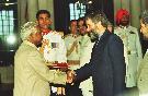 | Caption: | The Ambassador-Designate of the Islamic Republic of Iran to India, His Excellency Mr Mir Mahmoud Mousavi Khamanch presenting his credentials to the President of India, Shri K R Narayanan at Rashtrapati Bhavan in New Delhi on April 13, 1998 |