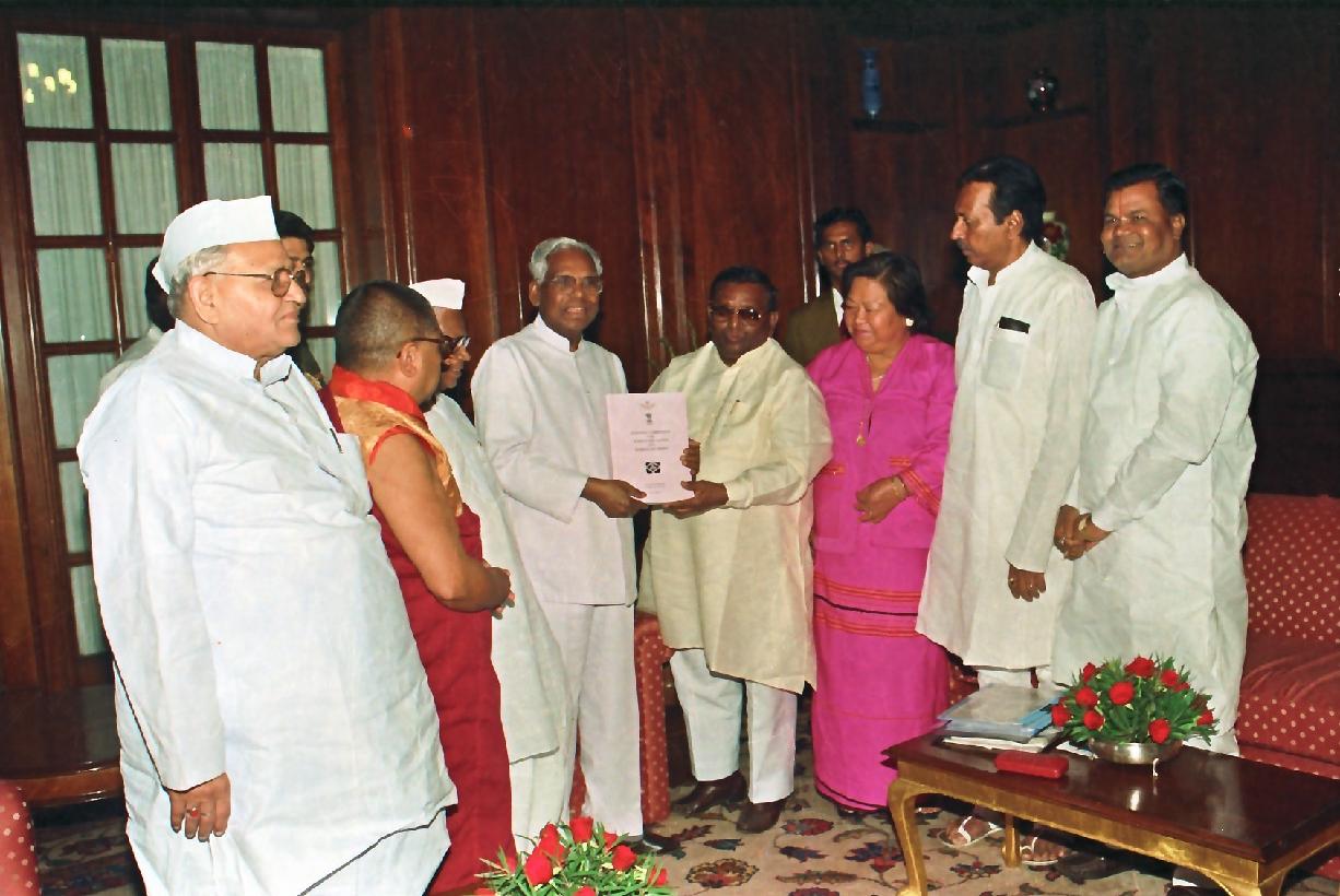 | Caption: | The President of India, Shri K R Narayanan during the Presentation Report by Chairman of SC and ST at Rashtrapati Bhavan in New Delhi on April 25, 1998 |