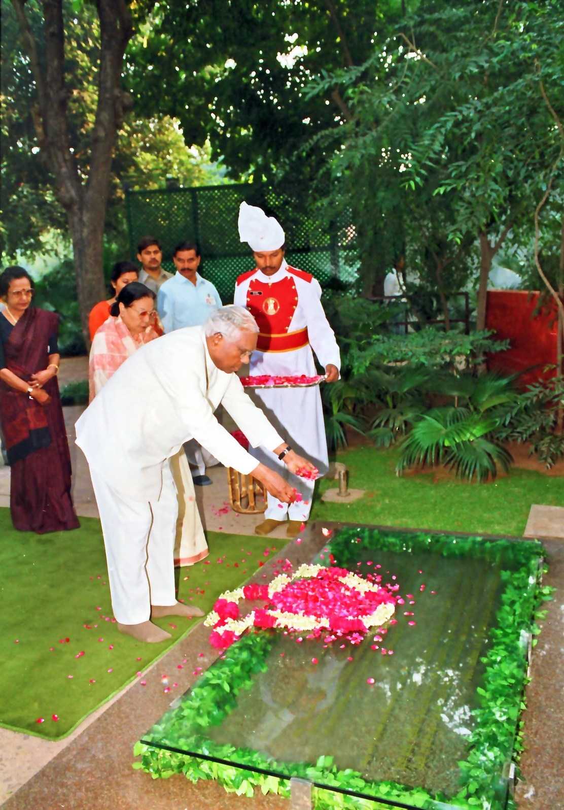 | Caption: | The President of India, Shri K R Narayanan paying homage to the Former Prime Minister of India, Late Smt Indira Gandhi on the occasion of her Death Anniversary at Safdarjung Road in New Delhi on Oct 31, 1998 |