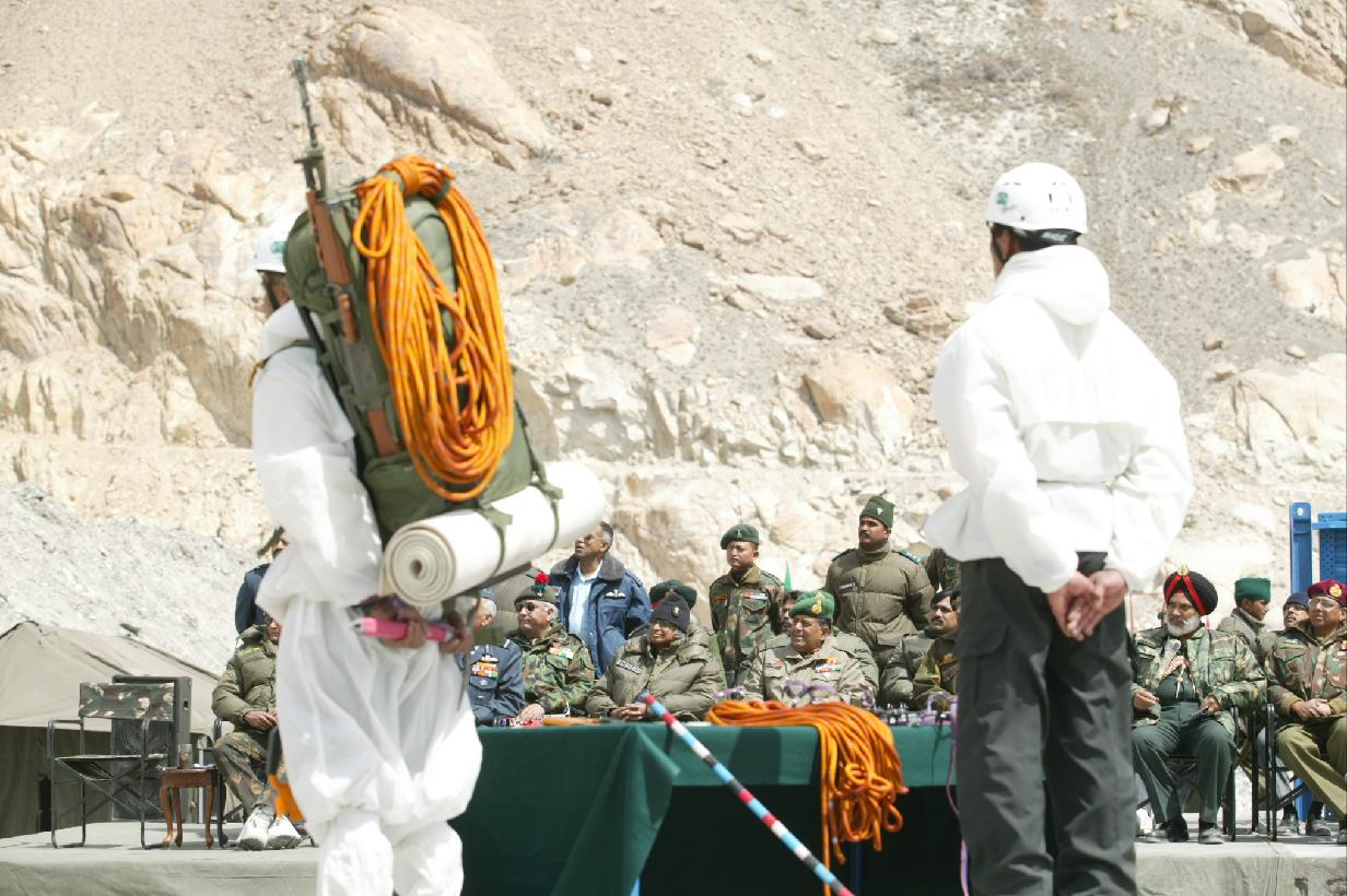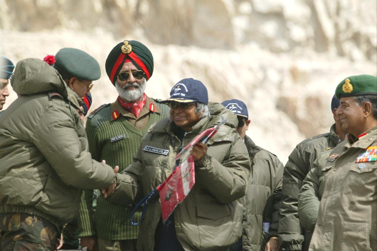 | Caption: | The President of India, Dr A P J Abdul Kalam witnessing the Siachen Battle School Training at Srinagar in Jammu & Kashmir on April 02, 2004 |