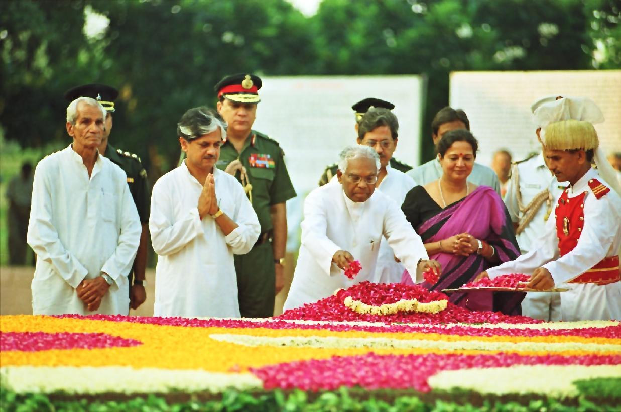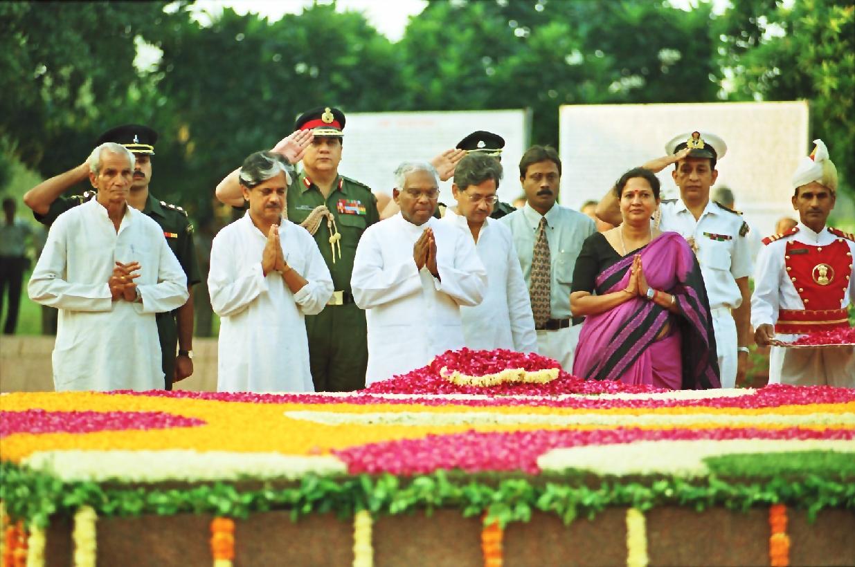 | Caption: | The President of India, Shri K R Narayanan paying homage to the Former Prime Minister of India, Late Shri Lal Bahadur Shastri on the occasion of his Birth Anniversary at Vijay Ghat in New Delhi on Oct 02, 1998 |