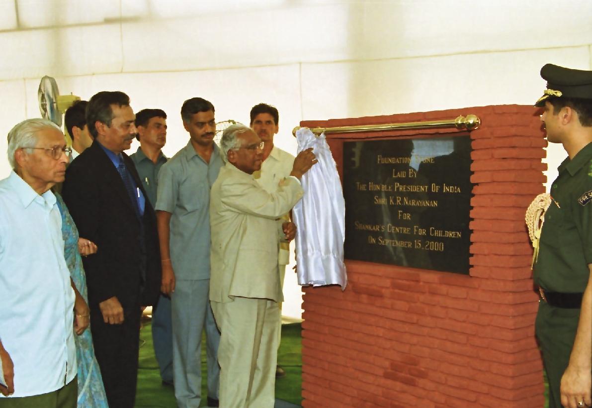 | Caption: | The President of India, Shri K R Narayanan laying the Foundation Stone of the Shankar's Centre for Children (SCC) at Plot No 6, Chanakyapuri in New Delhi on Sep 15, 2000 |