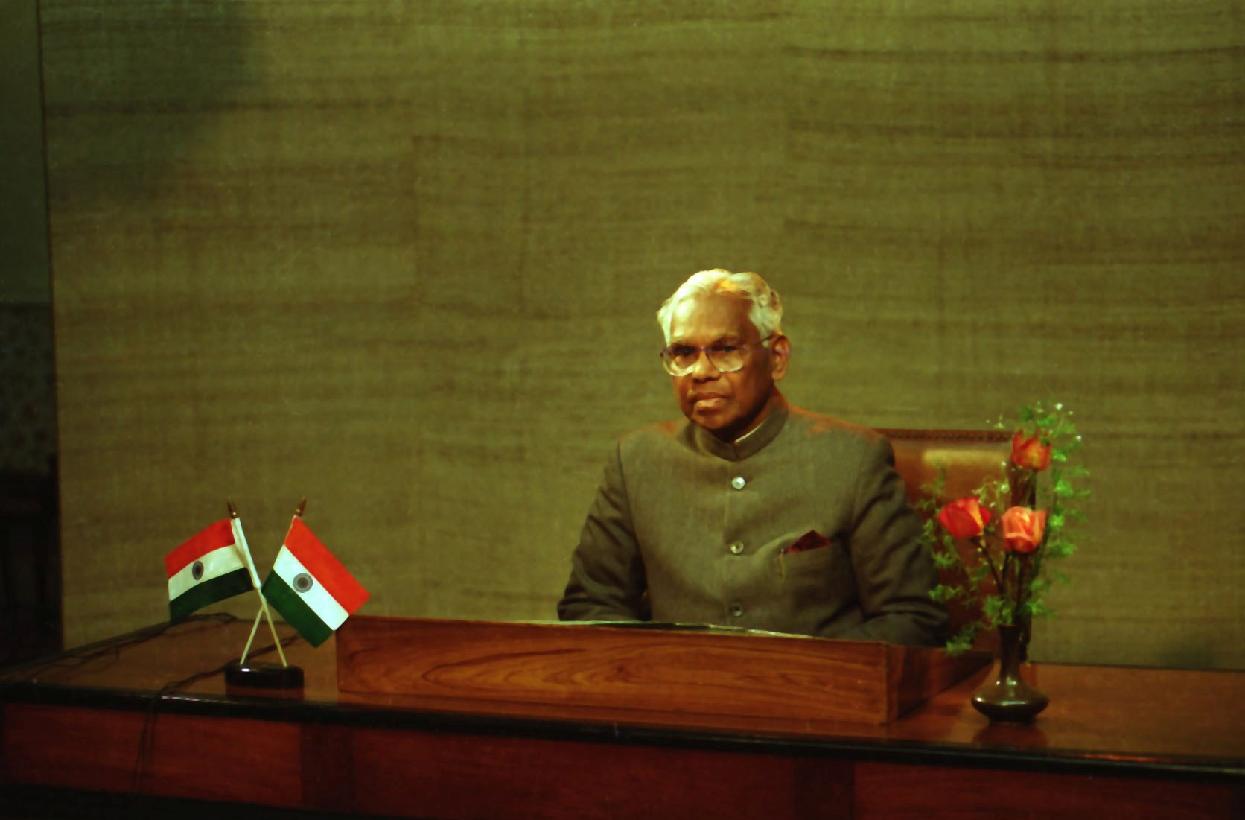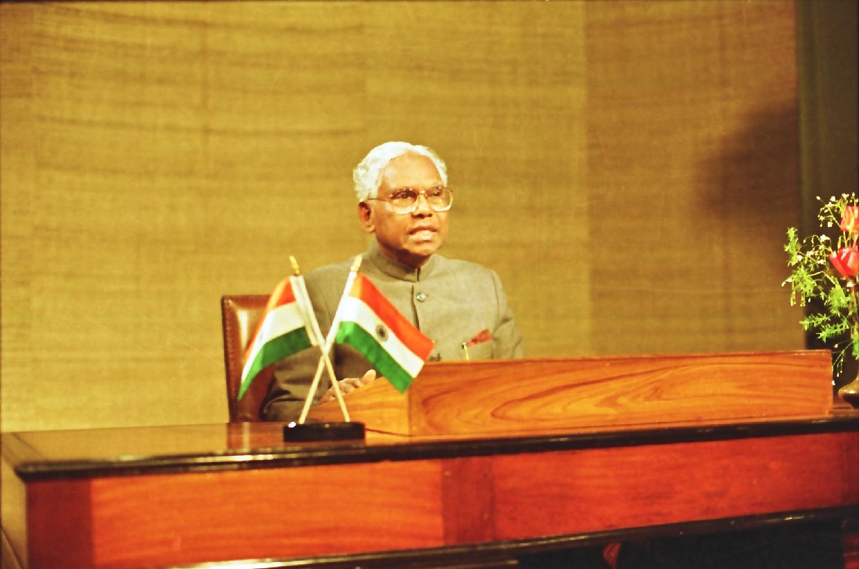 | Caption: | The President of India, Shri K R Narayanan addressing to the Nation through Message Recording on the eve of Republic Day at the Rashtrapati Bhavan in New Delhi on Jan 24, 1998 |