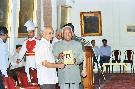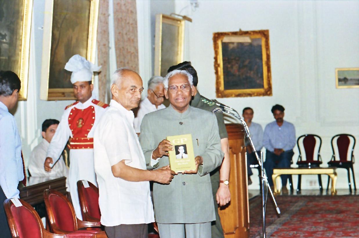| Caption: | The President of India, Shri K R Narayanan receiving a copy of Shri G Parthasarathy Commemorative Volume from Shri H Y Sharada Prasad at the Yellow Drawing Room of Rashtrapati Bhavan in New Delhi on May 26, 1998 |
