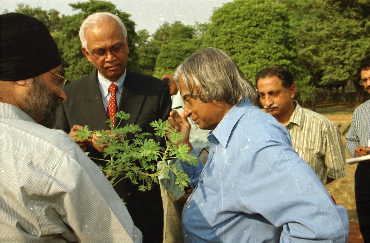 | Caption: | The President of India, Dr A P J Abdul Kalam planting of sapling at Herbal Farm at Rashtrapati Bhavan in New Delhi on Oct 24, 2002 |