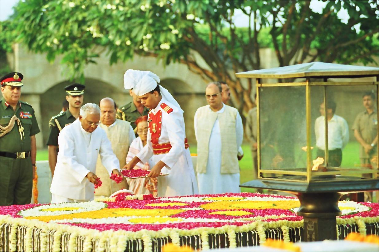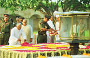 | Caption: | The President of India, Shri K R Narayanan paying homage to the Father of Nation, Mahatma Gandhi on the occasion of his 131st Birth Anniversary at Rajghat in New Delhi on Oct 02, 1998 |