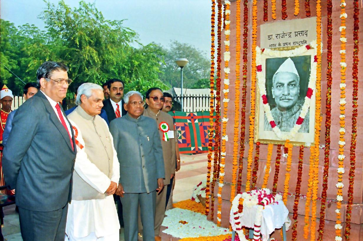 | Caption: | The President of India, Shri K R Narayanan paying homage at the Statue of Dr Rajendra Prasad on his 113th Birth Anniversary at Parliament House Annexe in New Delhi on Dec 03, 1997 |