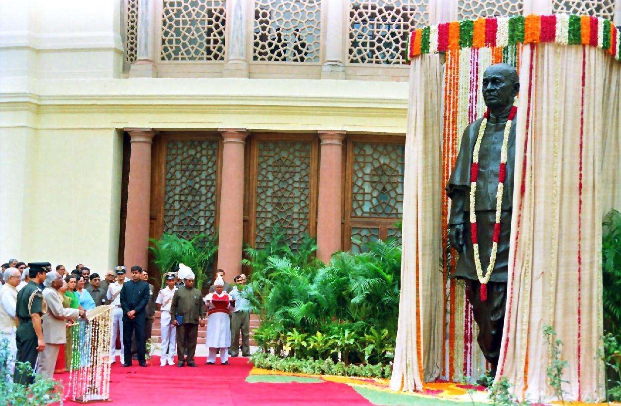 | Caption: | The President of India, Shri K R Narayanan being unveiled the Statue of Sardar Vallabh Bhai Patel at Parliament House in New Delhi on Aug 14, 1998 |