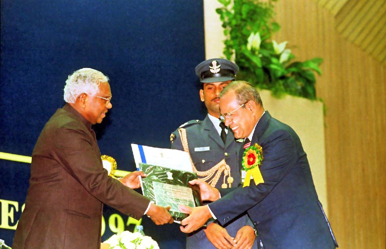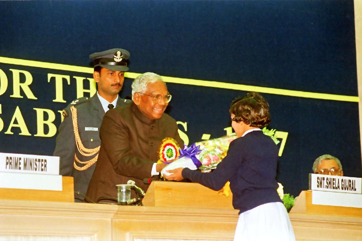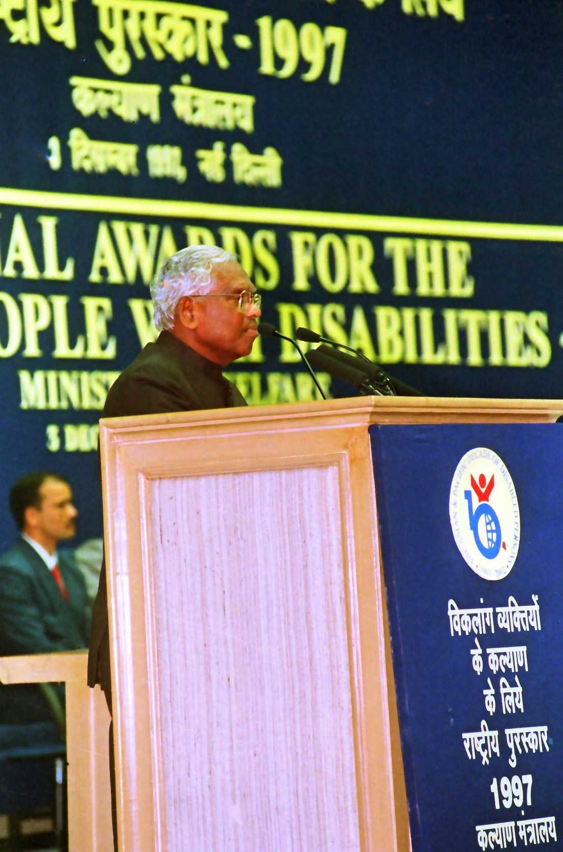 | Caption: | The President of India, Shri K R Narayanan presenting the National Awards in the Fields of Welfare of People with Disabilities at Vigyan Bhavan in New Delhi on Dec 03, 1997 |