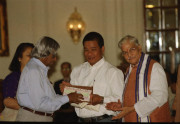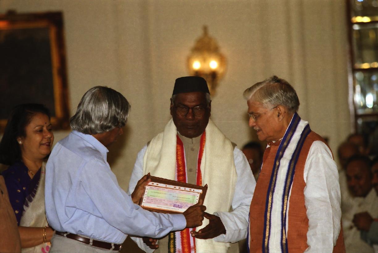 | Caption: | The President of India, Dr A P J Abdul Kalam giving away the Hindi Sevi Samman Yojna Awards for the year 2001 at the Yellow Drawing Room of Rashtrapati Bhavan in New Delhi on Oct 11, 2002 |