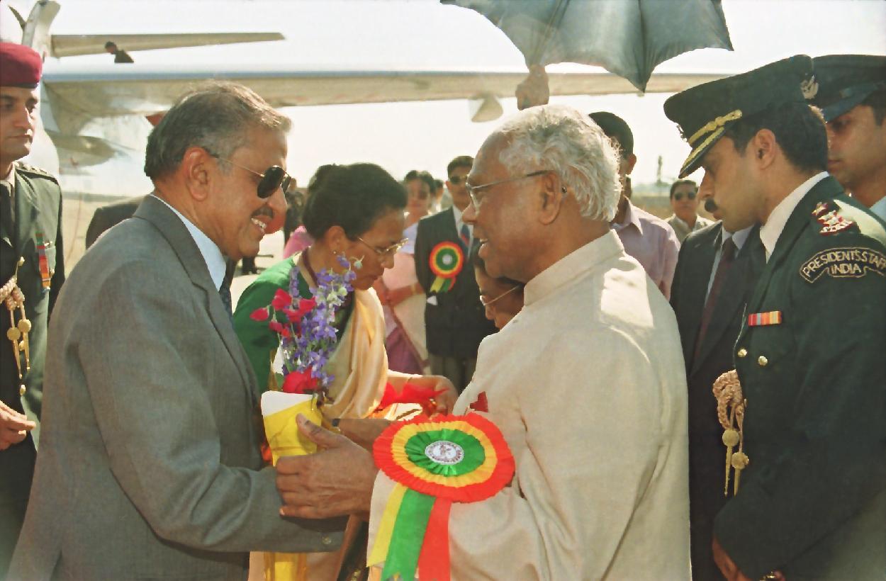 | Caption: | The President of India, Shri K R Narayanan being seen off by the Governor of Manipur, Shri O N Srivastava at Imphal Airport in Manipur on Feb 14, 1999 |