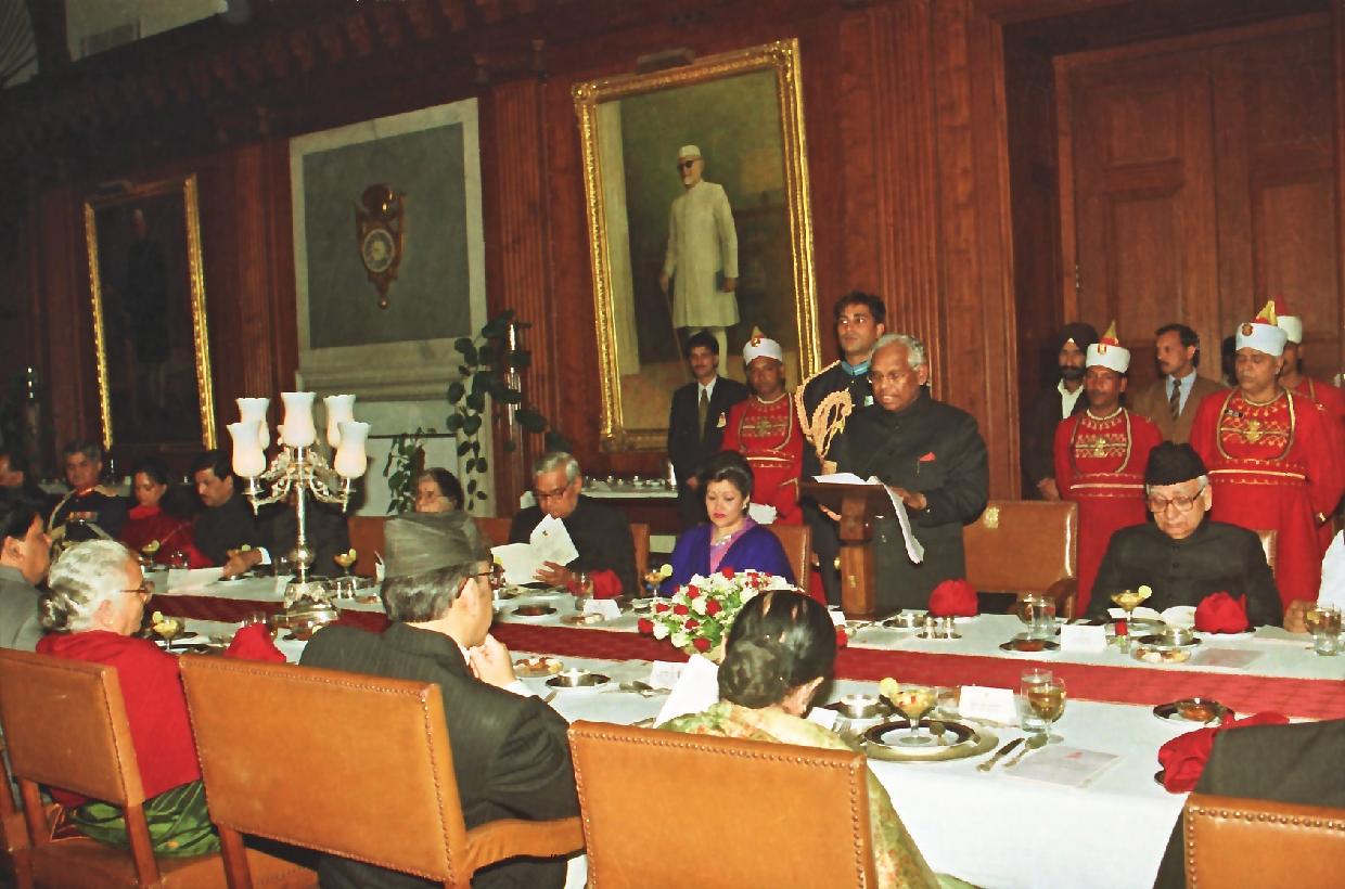 | Caption: | The President of India, Shri K R Narayanan at the Banquet Hosted in Honour of Their Majesties King of Nepal, His Majesty Birendra Bir Bikram Shah Dev and Queen Aishwarya Rajya Laxmi Devi Shah at the Banquet Hall of Rashtrapati Bhavan in New Delhi on Jan 25, 1999 |