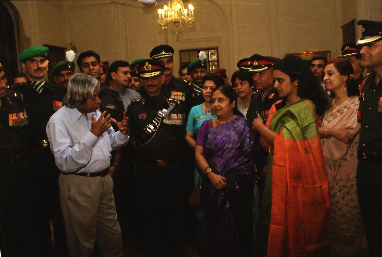 | Caption: | A Territorial Army Officers, JCOs and Ors and their Family Members calling on the President of India, Dr A P J Abdul Kalam at the Yellow Drawing Room of Rashtrapati Bhavan in New Delhi on Oct 11, 2002 |