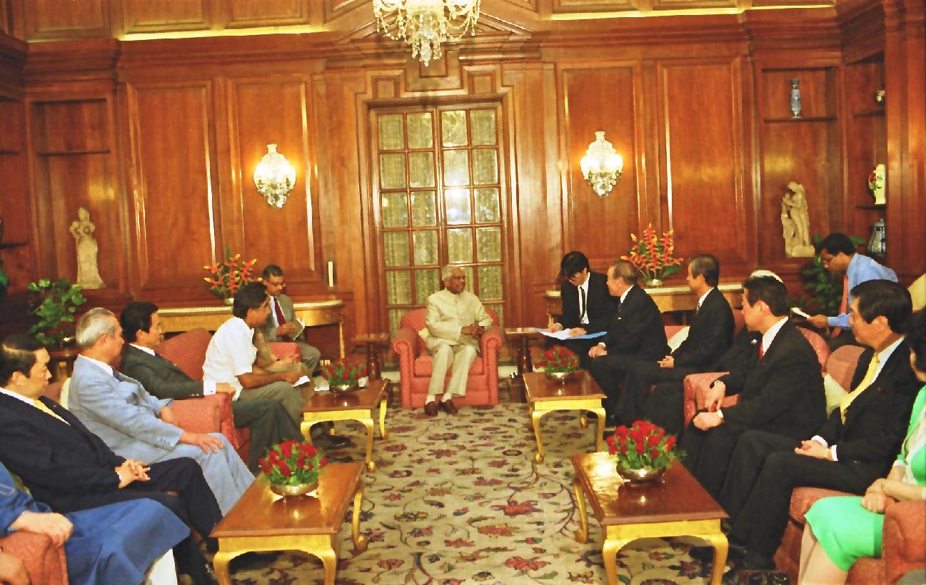 | Caption: | A Japanese Parliamentary Delegation led by Mr Hosei Norota calling on the President of India, Shri K R Narayanan at the Morning Room of Rashtrapati Bhavan in New Delhi on May 01, 2002 |