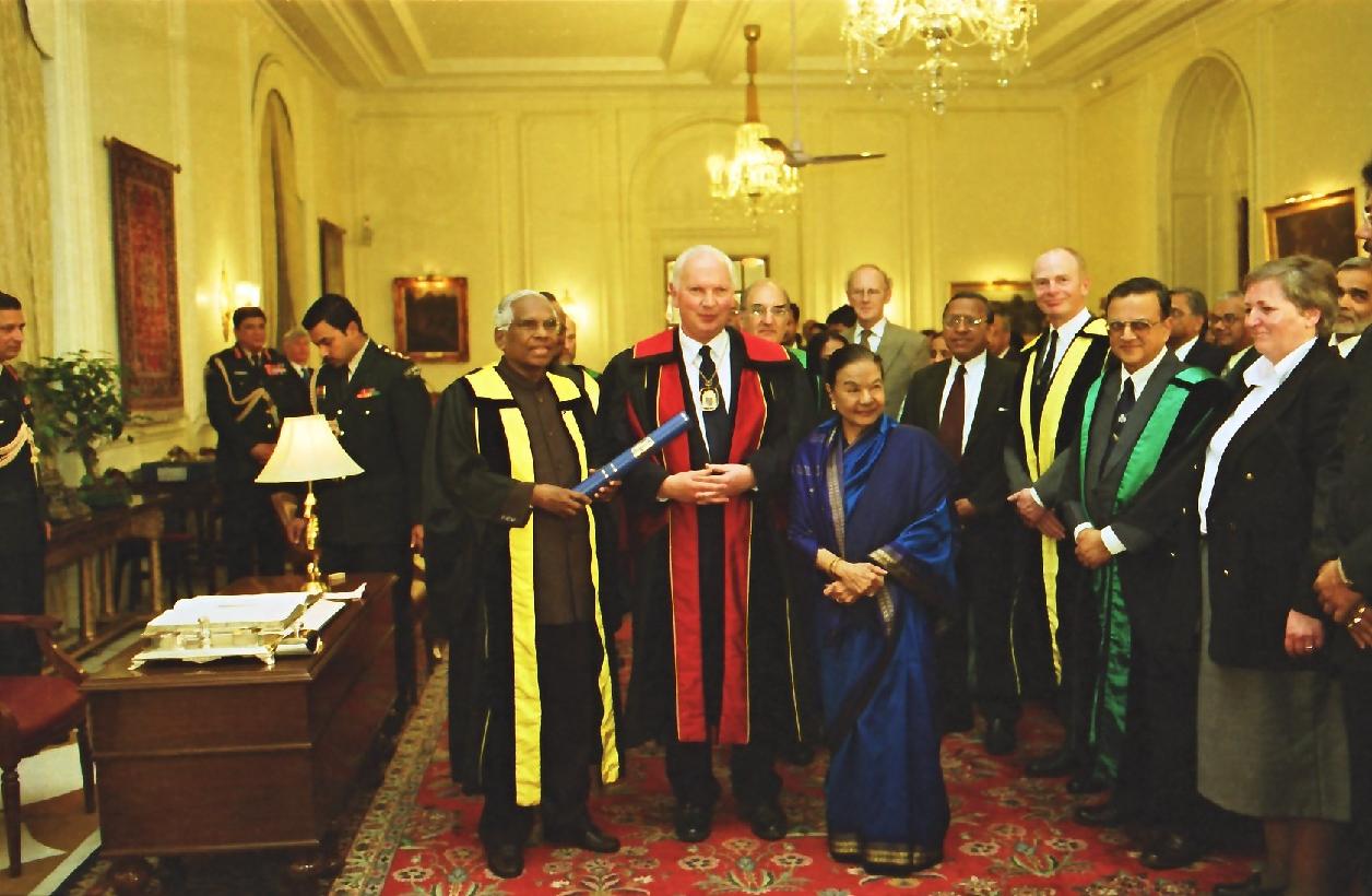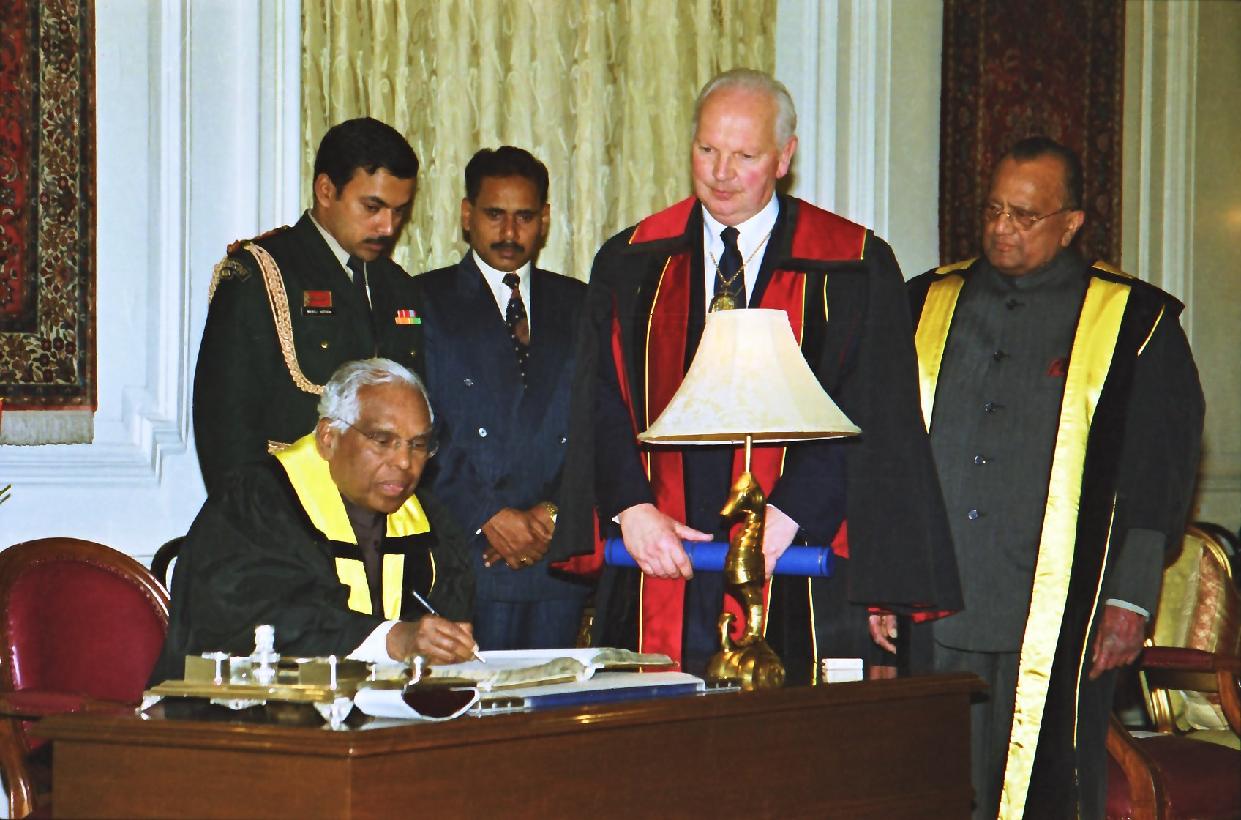 | Caption: | The President of India, Shri K R Narayanan accepting the Honorary Fellowship of the Royal College of Physicians and Surgeons of Glasgow at the Yellow Drawing Room of Rashtrapati Bhavan in New Delhi on Feb 18, 2002 |