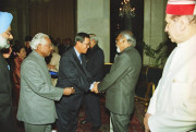 | Caption: | The President of India, Shri K R Narayanan at the Lunch Hosted in Honour of the Distinguished Guests Prime Minister of the Royal Government of Cambodia, HE Mr Hun Sen and his wife Mrs Bun Rany Hun Sen at the Banquet Hall of Rashtrapati Bhavan in New Delhi on Feb 18, 2000 |