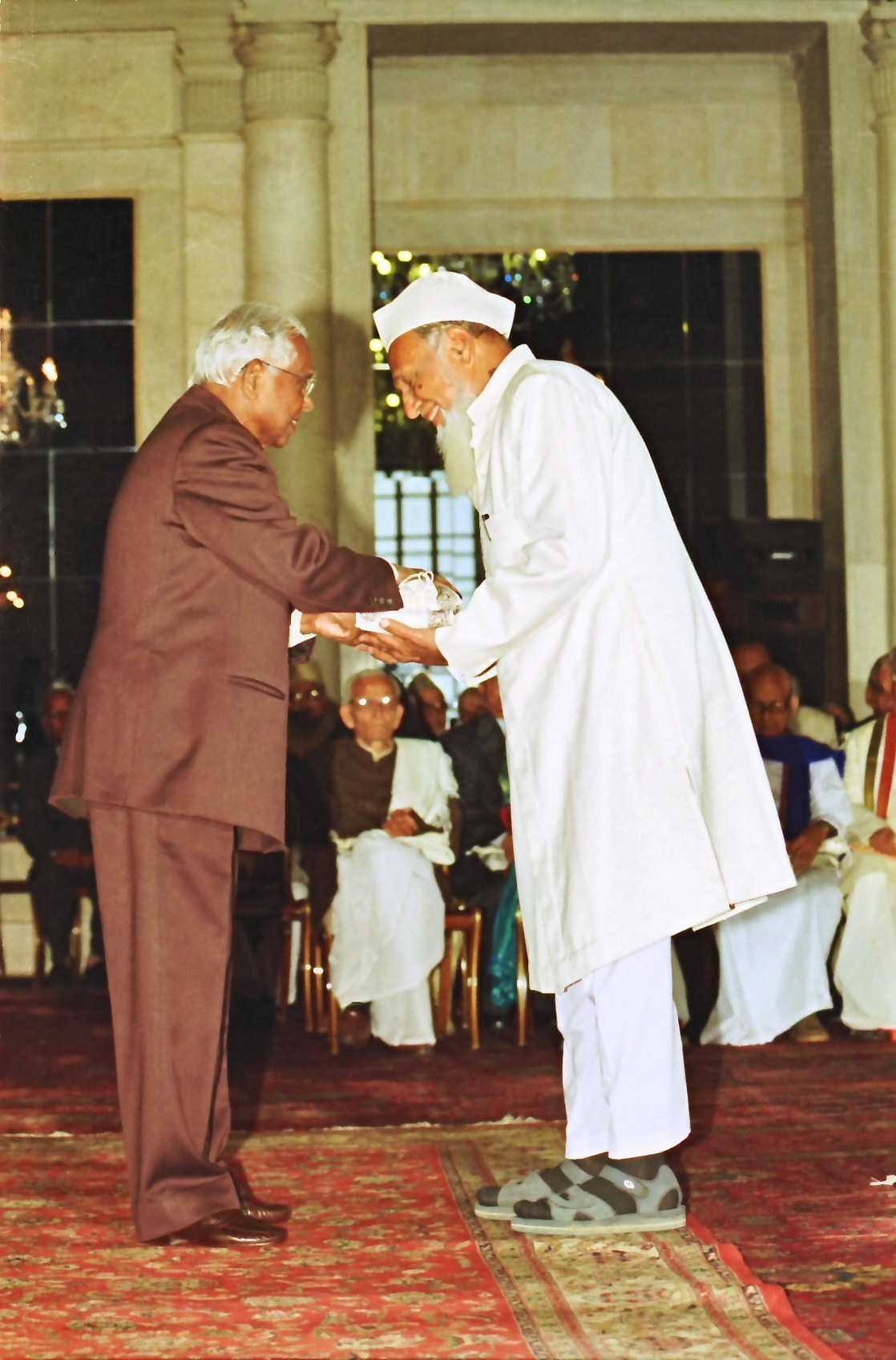 | Caption: | The President of India, Shri K R Narayanan presenting the Awards of Certificate of Honour to Scholars of Sanskrit Pali Prakrit Arabic and Persian Languages for the Years at the Ashok Hall of Rashtrapati Bhavan in New Delhi on Feb 06, 2002 |