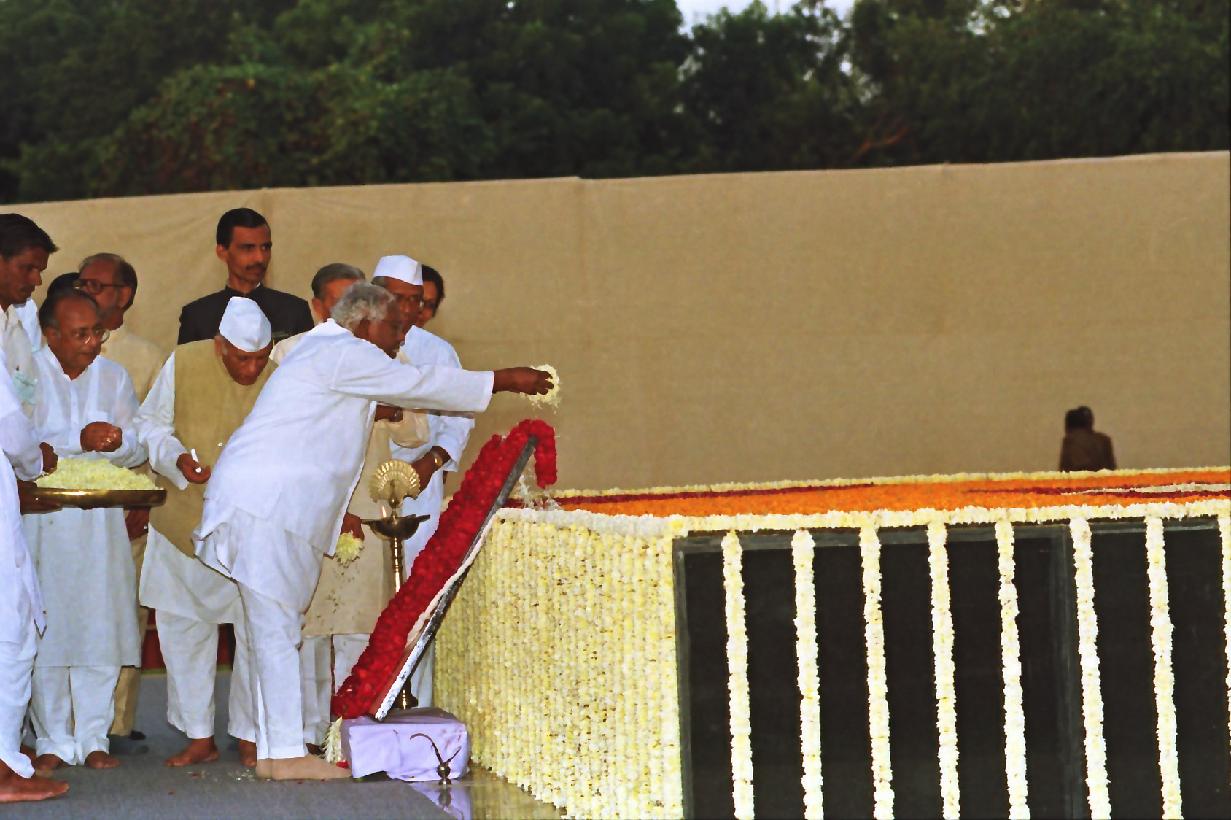 | Caption: | The President of India, Shri K R Narayanan paying homage at Samadhi of Shri Morarji Desai at Ahmedabad in Gujarat on Oct 29, 1998 |
