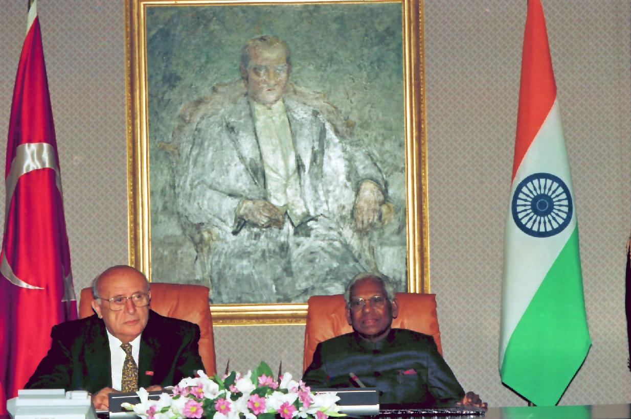 | Caption: | The President of India, Shri K R Narayanan giving Joint Press Statements after Singning of Agreements at Ankara in Turkey on Sep 17, 1998 |