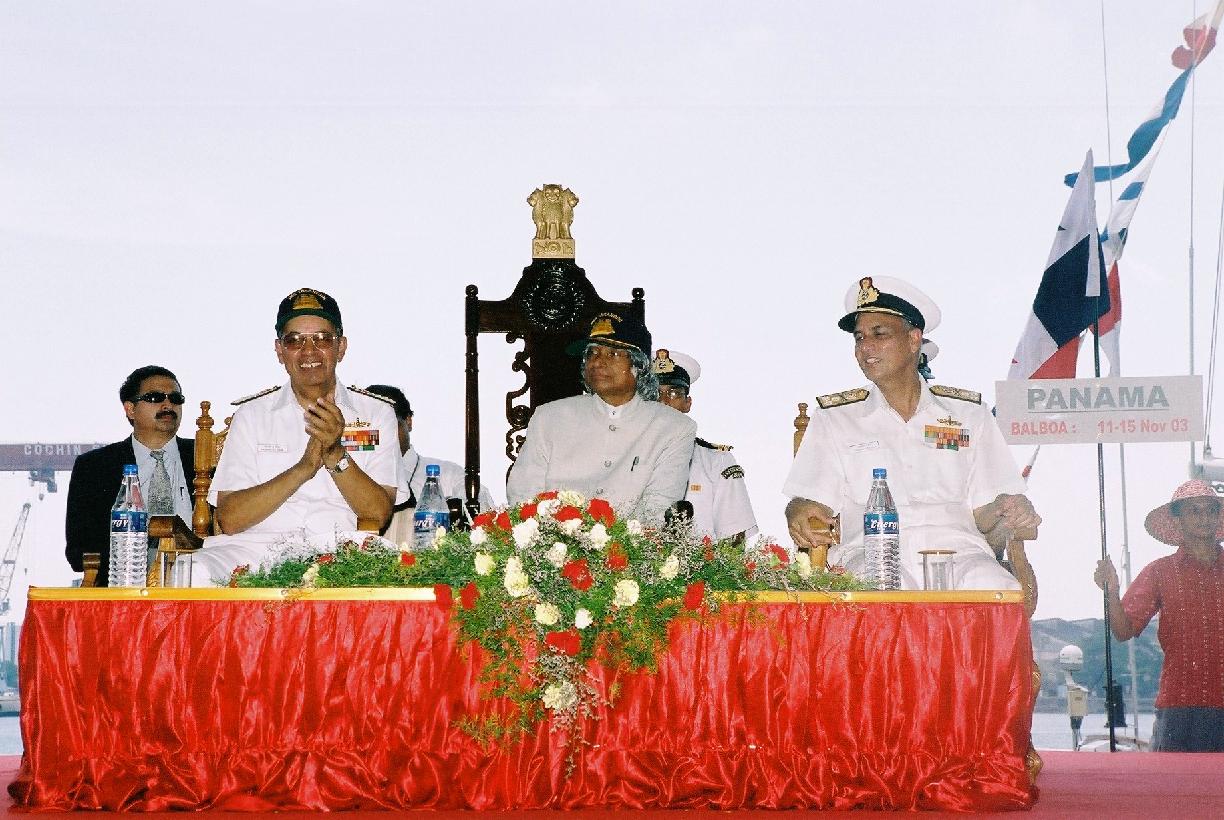 | Caption: | The President of India, Dr A P J Abdul Kalam addressing to Naval Personnel at Kochi in Kerala on April 25, 2004 |