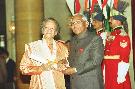 | Caption: | The President of India, Shri K R Narayanan presenting the Bharat Ratan Award to Pandit Ravi Shankar at the Darbar Hall of Rashtrapati Bhavan in New Delhi on Feb 16, 1999 |