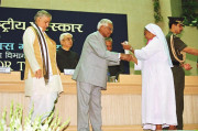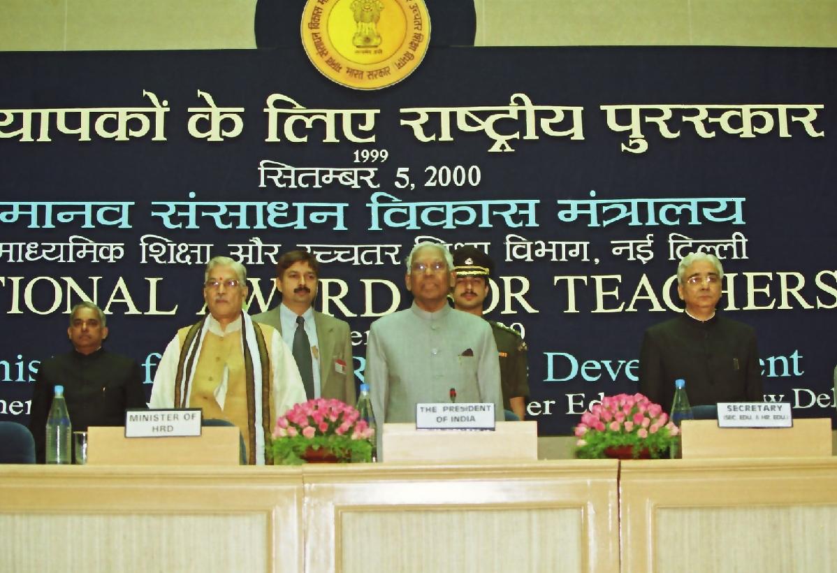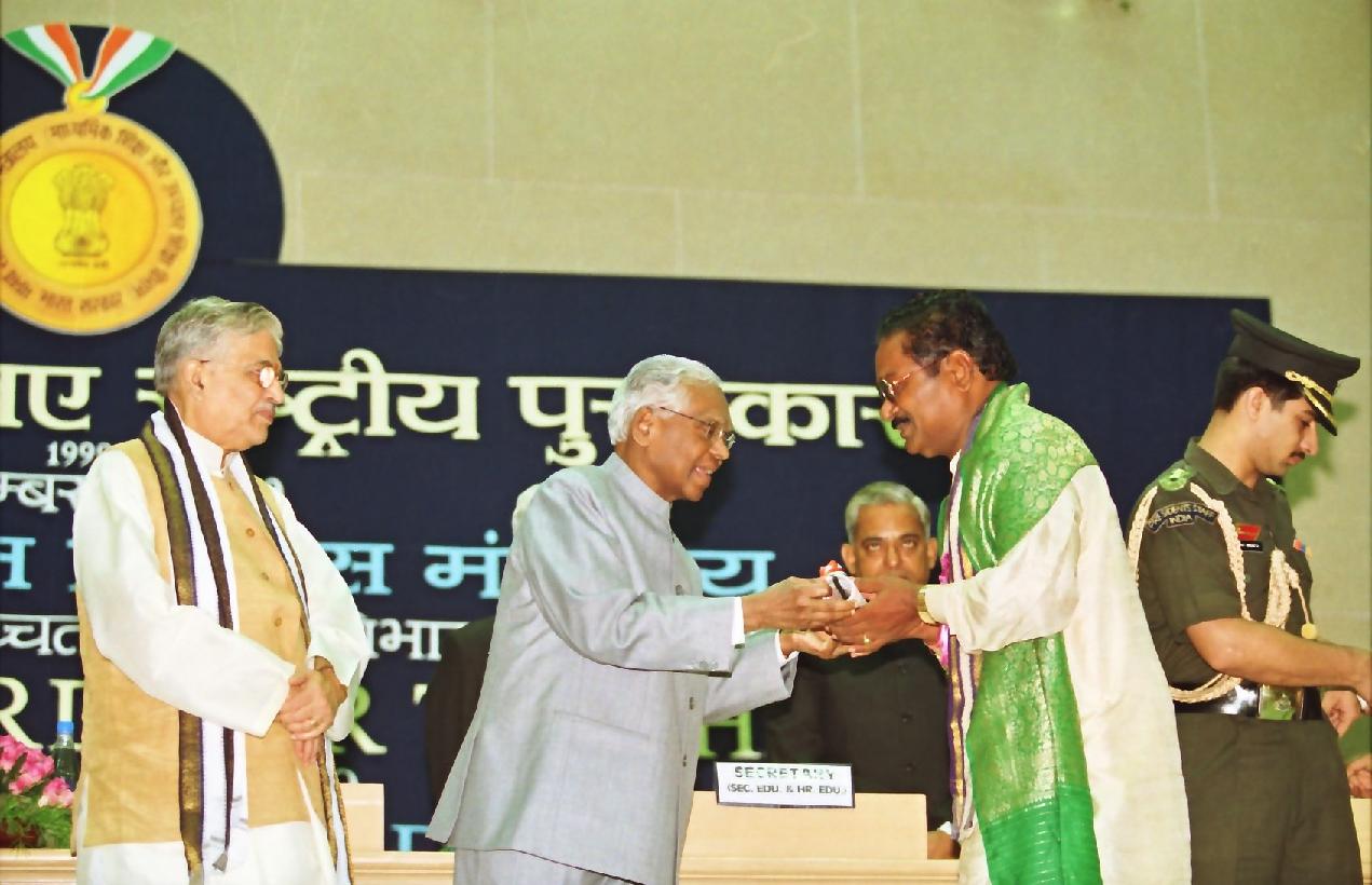 | Caption: | The President of India, Shri K R Narayanan presenting the National Awards to Teachers at Vigyan Bhavan in New Delhi on Sep 05, 2000 |