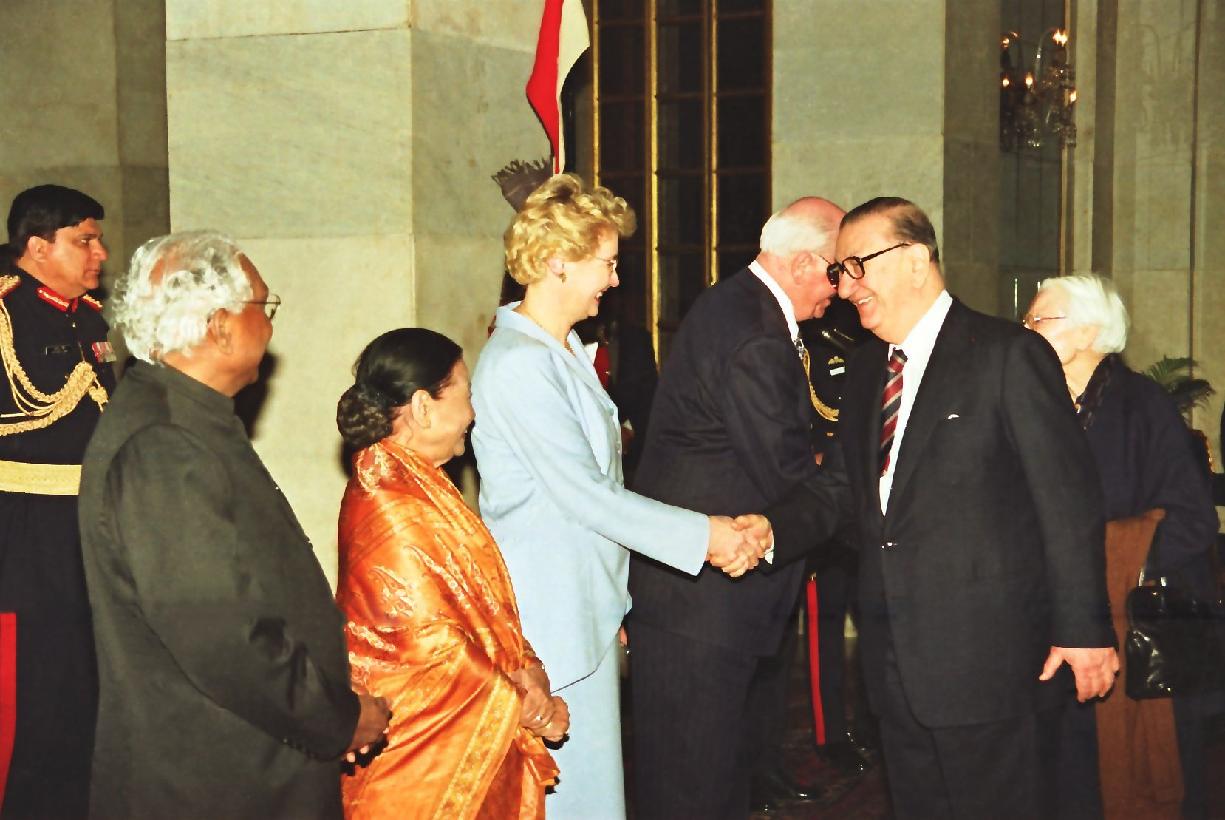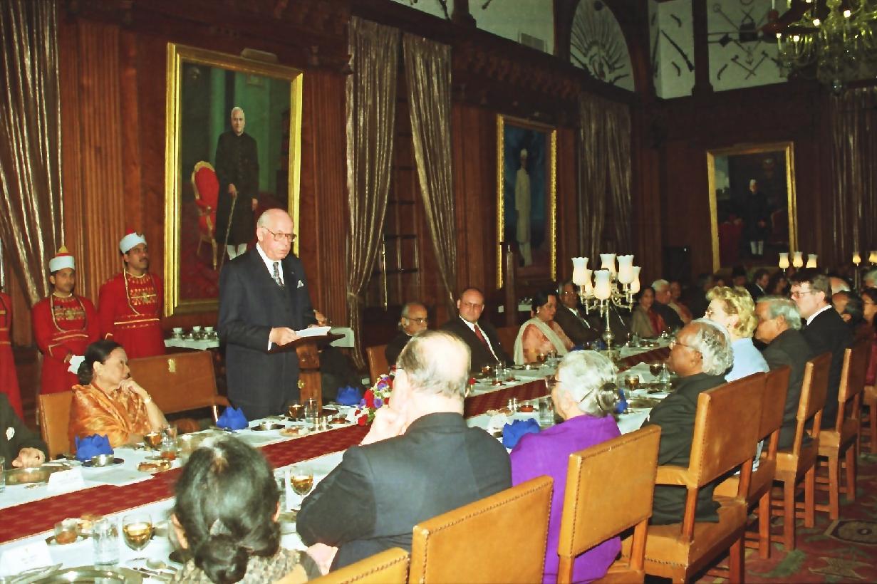 | Caption: | The President of India, Shri K R Narayanan at the Banquet Hosted in Honour of the President of Estonia, HE Mr Lennart Meri and his wife Mrs Helle Meri at the Banquet Hall of Rashtrapati Bhavan in New Delhi on Feb 05, 1999 |