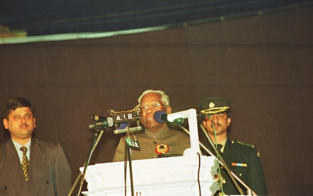 | Caption: | The President of India, Shri K R Narayanan addressing at the Inaugural Function of the New Building of Manovikar Kendra at Calcutta in West Bengal on Feb 12, 1999 |