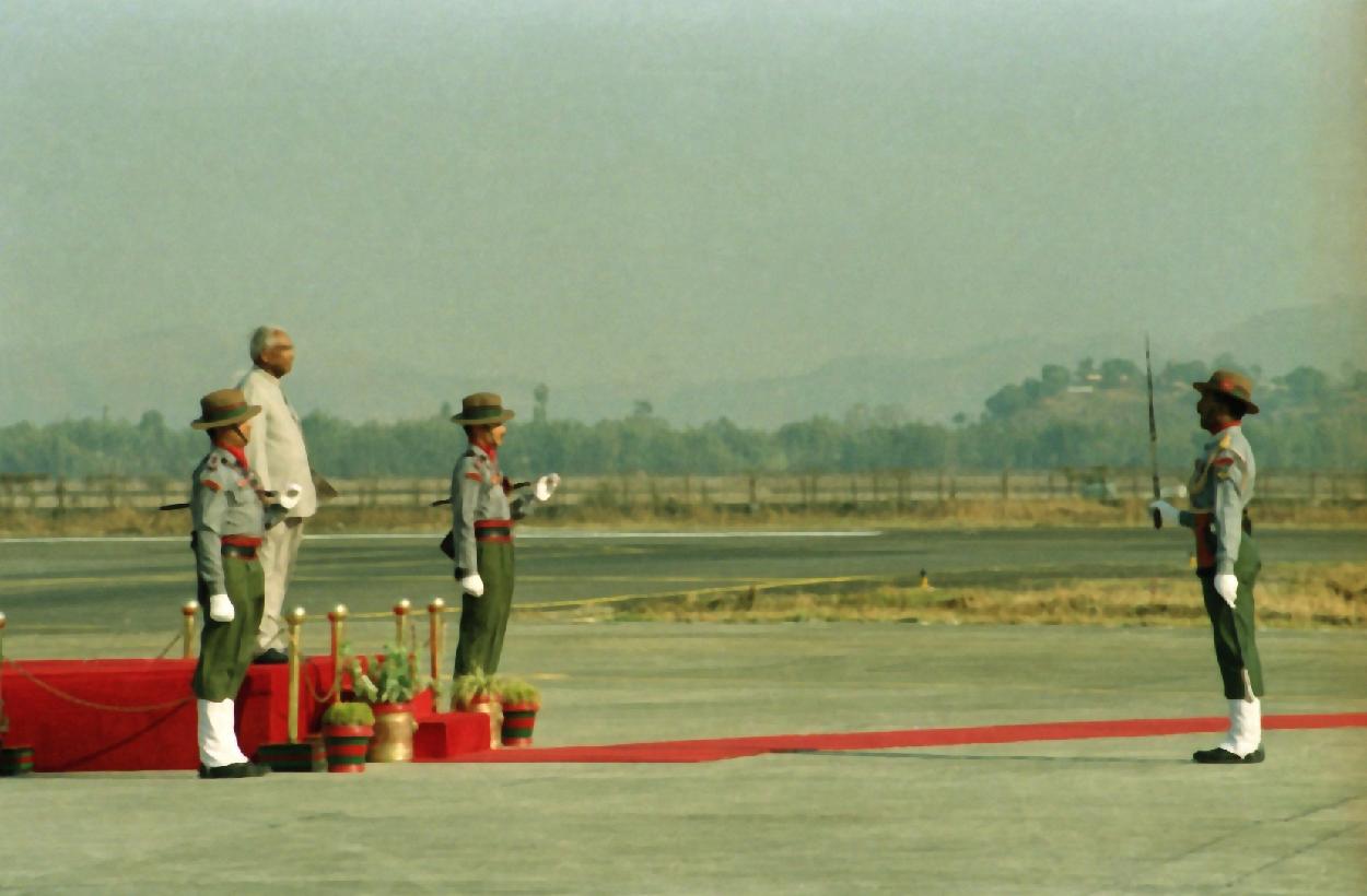 | Caption: | The President of India, Shri K R Narayanan inspecting the Guard of Honour at Imphal Airport in Manipur on Feb 13, 1999 |