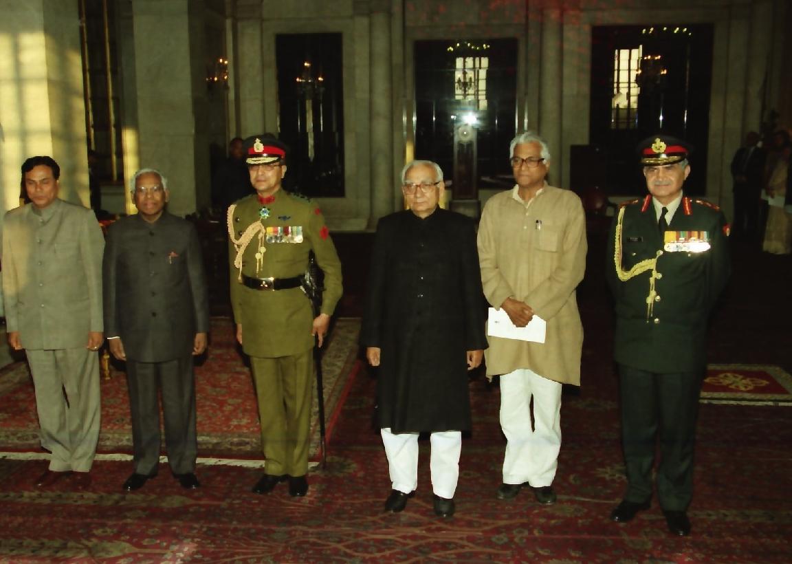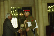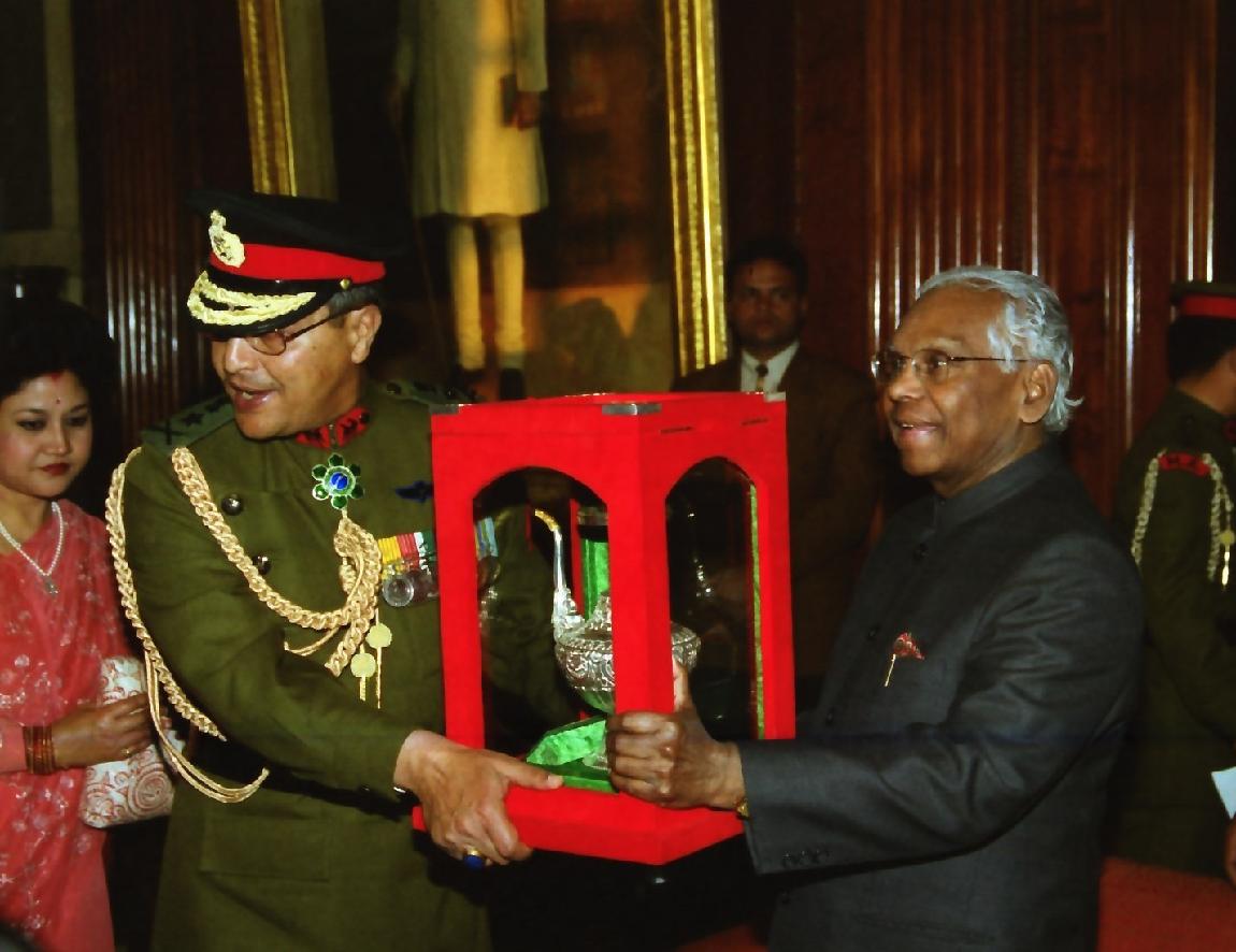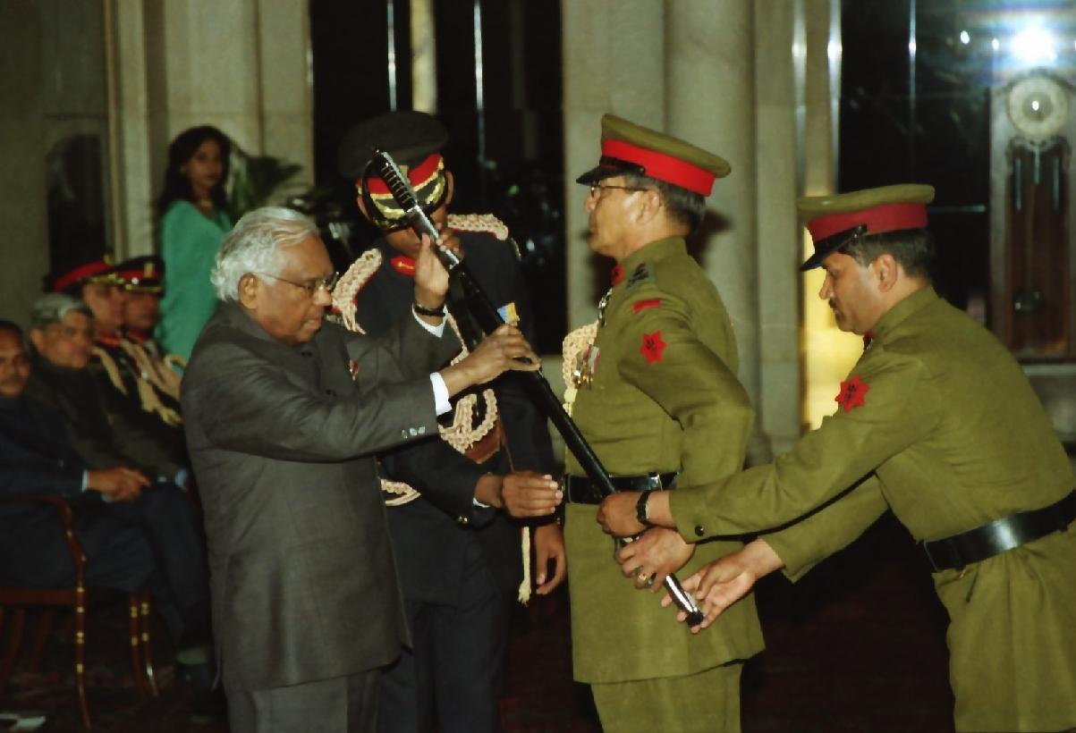 | Caption: | The President of India, Shri K R Narayanan being conferred the Honorary Rank of General of the Indian Army on General Prajwalla Shumsher Jung Bahadur Rana Tri Sha Te Chief of the Army Staff Royal Nepal Army at the Ashok Hall of Rashtrapati Bhavan in New Delhi on Feb 25, 2000 |