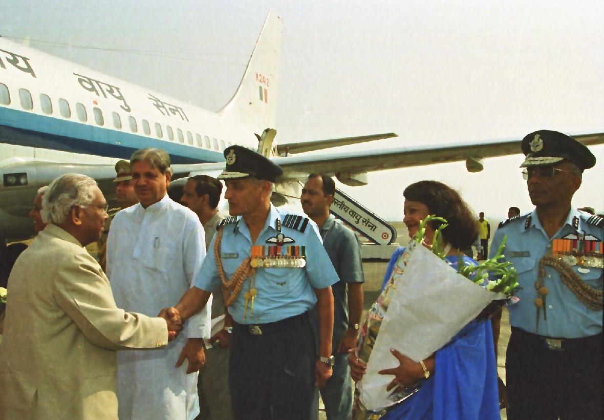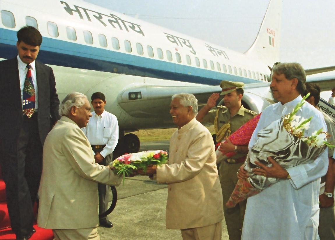 | Caption: | The President of India, Shri K R Narayanan being welcomed by the Governor of Uttar Pradesh, Shri Suraj Bhan at Bareilly Airport in Uttar Pradesh on Oct 24, 2000 |