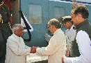 | Caption: | The President of India, Shri K R Narayanan being welcomed by the Governor Rajasthan, Shri Anshuman Singh and the Chief Minister of Rajasthan, Shri Ashok Gehlot at Village Hamirpura Dist Alwar in Rajasthan on March 28, 2000 |