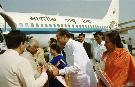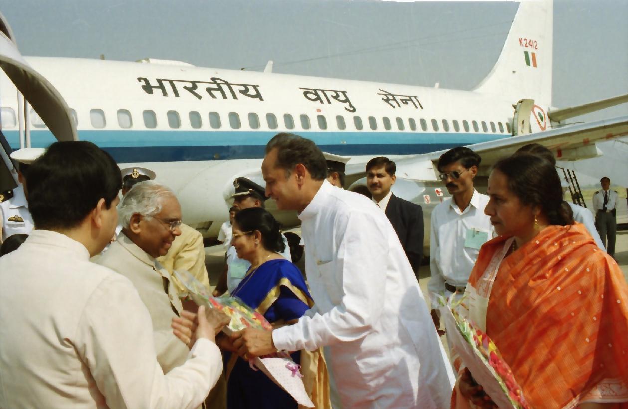 | Caption: | The President of India, Shri K R Narayanan being welcomed by the Governor of Rajasthan, Shri Anshuman Singh at Jaipur Airport in Rajasthan on Nov 06, 2001 |