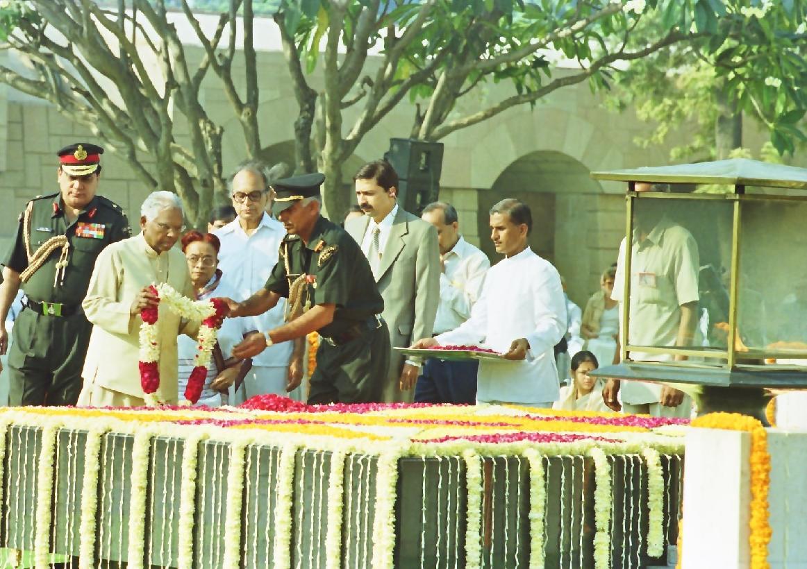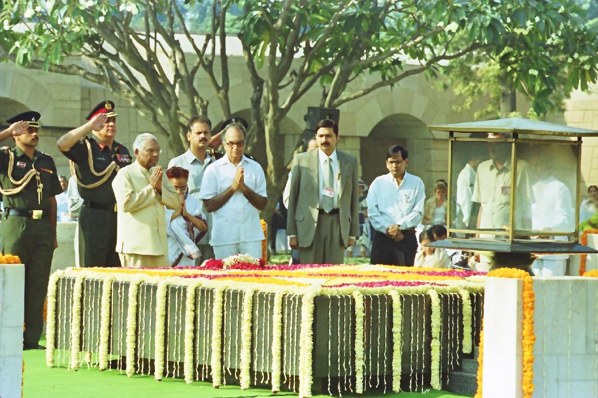 | Caption: | The President of India, Shri K R Narayanan paying homage to the Father of the Nation, Shri Mahatma Gandhi on the occasion of his 131st Birth Anniversary at Rajghat in New Delhi on Oct 02, 2000 |