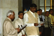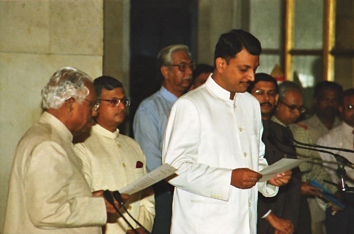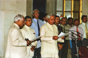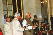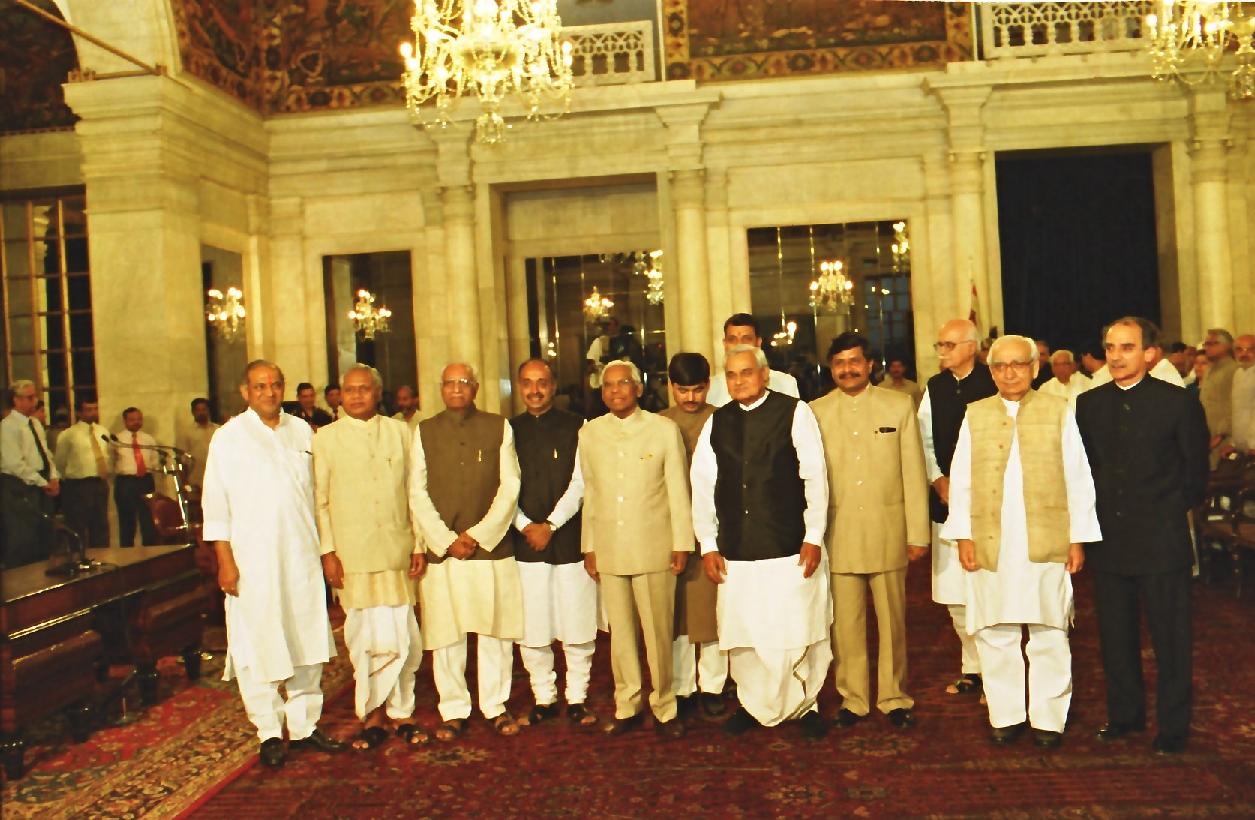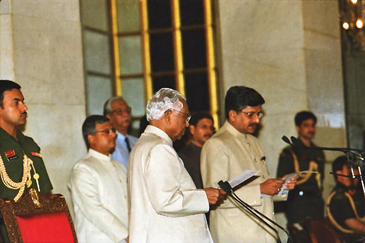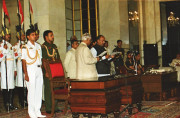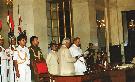 | Caption: | The President of India, Shri K R Narayanan at the Swearing-in-Ceremony of the Council of Ministers at the Ashok Hall in New Delhi on Sep 01, 2001 |