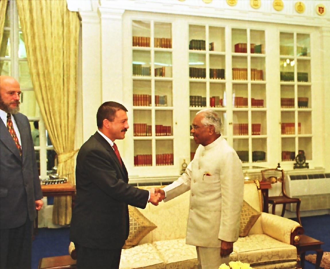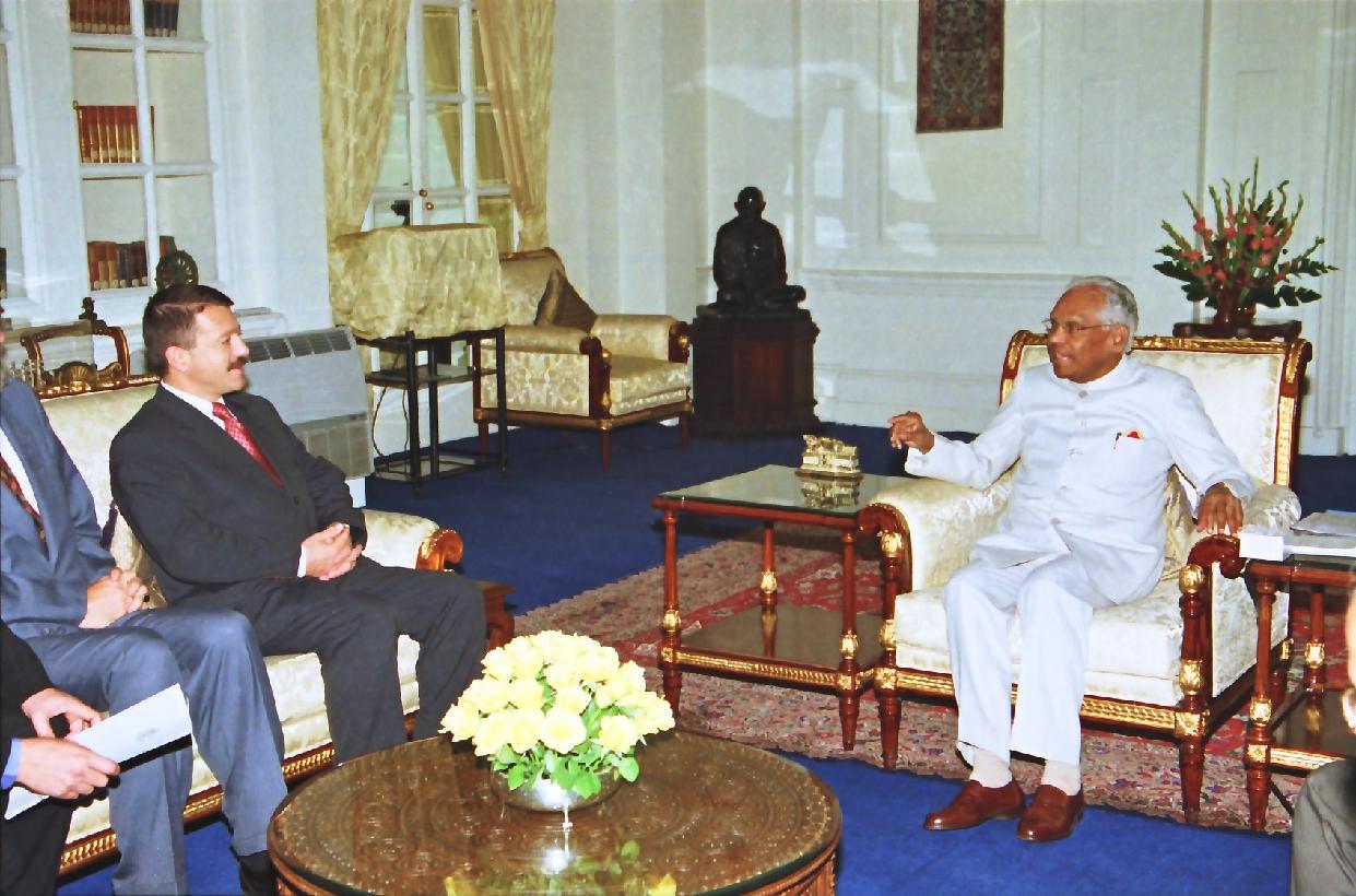 | Caption: | The President of India, Shri K R Narayanan interacting with the Defence Minister of Bulgaria, HE Mr Boyko Noev at the Study of Rashtrapati Bhavan in New Delhi on Oct 31, 2000 |