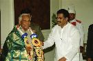 | Caption: | The President of India, Shri K R Narayanan being received a CD of the Tamil Word Processor from Dr M Natarajan Editor of Tamil Weekly Tamil Arasi at the Committee Room of Rashtrapati Bhavan in New Delhi on April 13, 2002 |