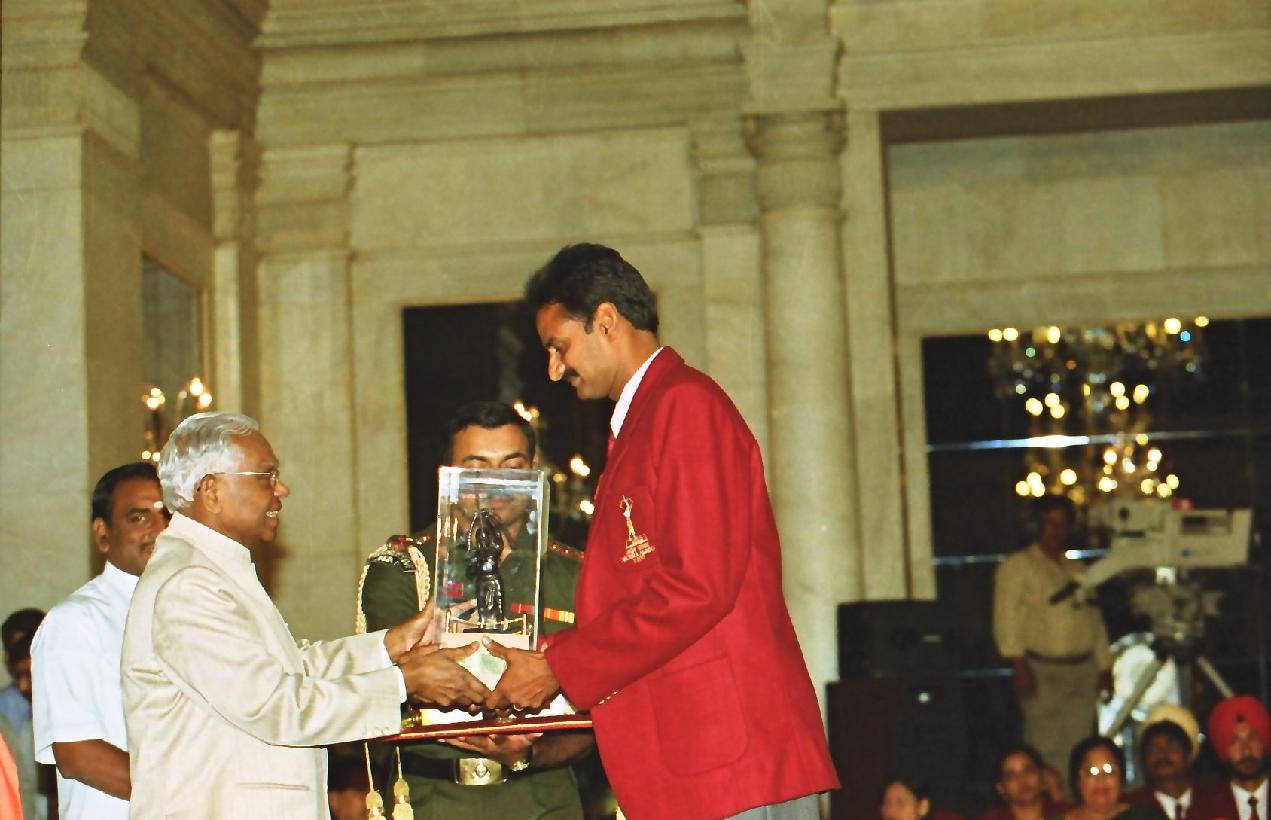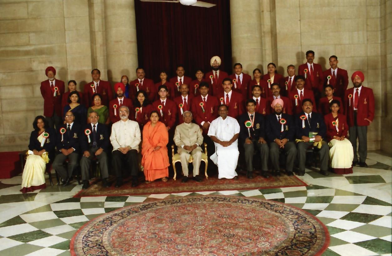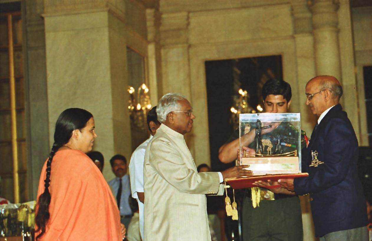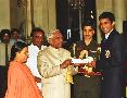 | Caption: | The President of India, Shri K R Narayanan presenting the Rajiv Gandhi Khel Ratna Award, Dronacharya Award, Arjuna Awards and Maulana Abul Kalam Azad Trophy at the Ashok Hall of Rashtrapati Bhavan in New Delhi on Sep 29, 2001 |