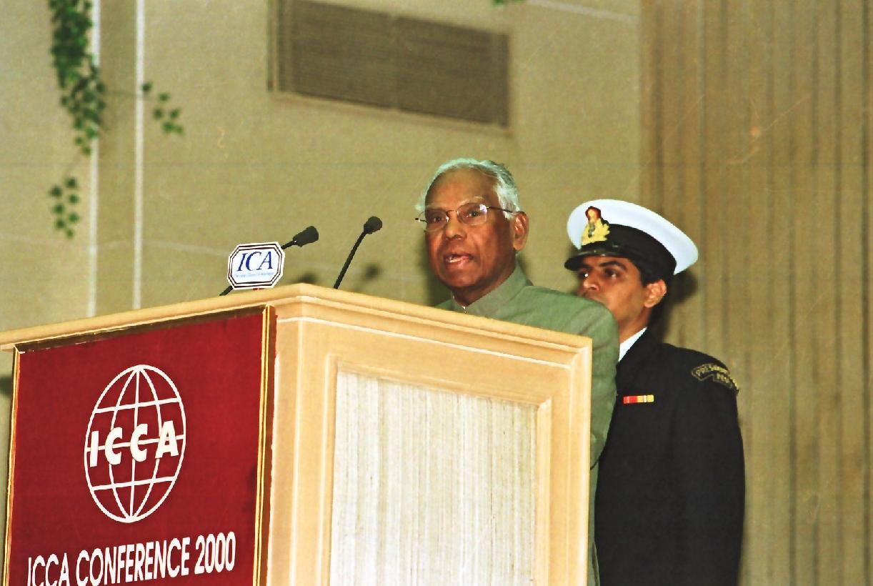 | Caption: | The President of India, Shri K R Narayanan inaugurating the ICCA Conference at Vigyan Bhavan in New Delhi on March 02, 2000 |
