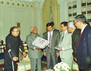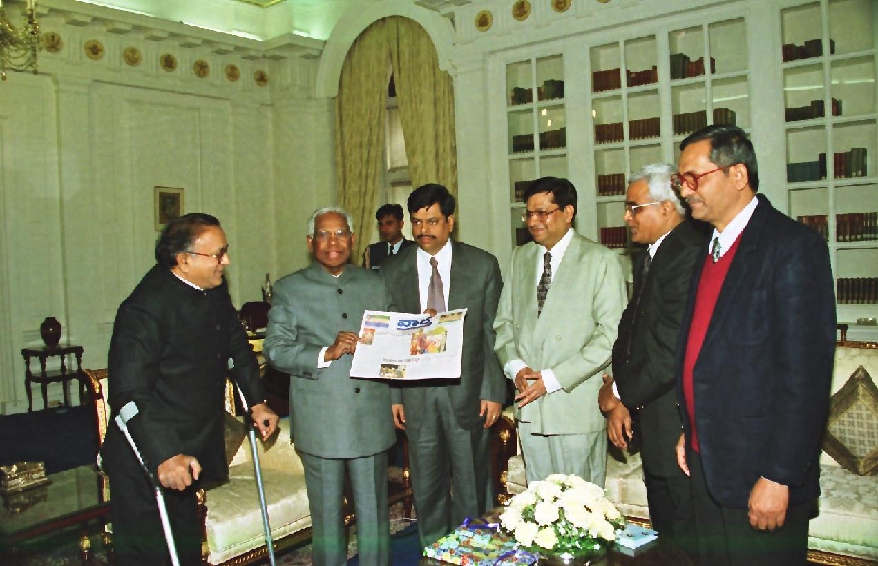 | Caption: | The President of India, Shri K R Narayanan during the Book Presentation of the First Edition of the Fifth Year Publication Vaartha from Shri Girish Sanghi Chairman and Managing Editor Vaartha at Rashtrapati Bhavan in New Delhi on Feb 01, 2000 |