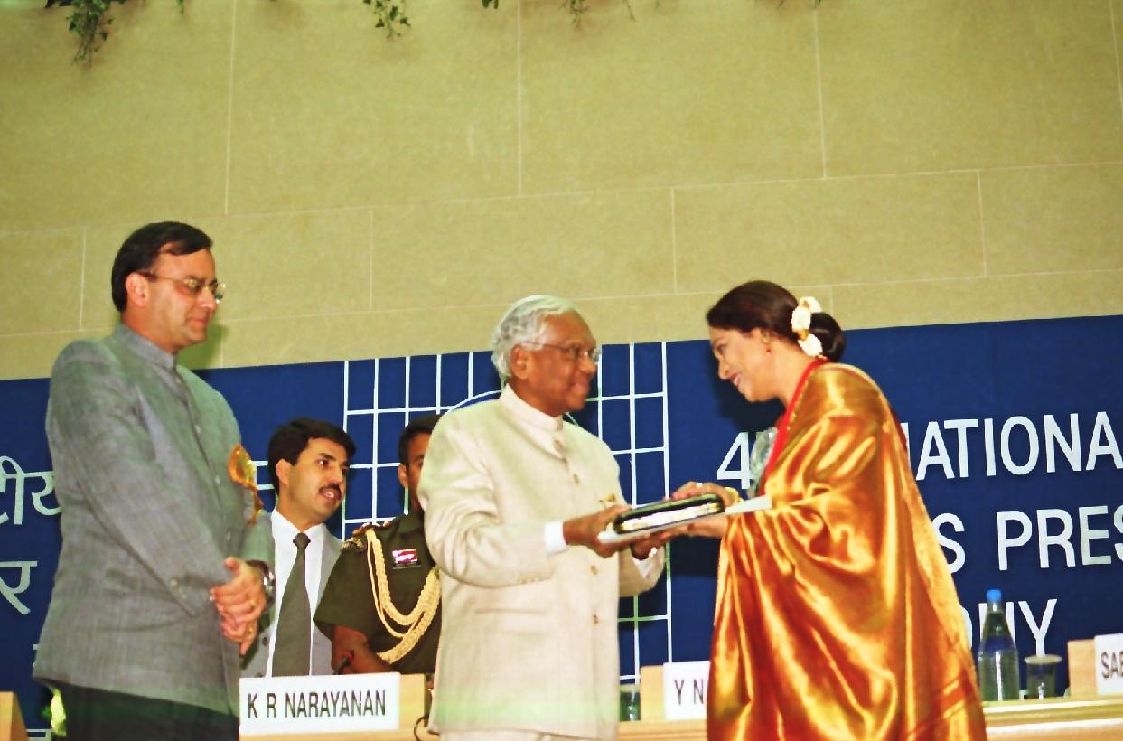 | Caption: | The President of India, Shri K R Narayanan presenting the 47th National Film Festival Awards at Vigyan Bhavan in New Delhi on Sep 18, 2000 |