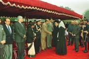 | Caption: | The President of India, Shri K R Narayanan at the Ceremonial Reception of President of the Republic of Indonesia, HE Mr Abdurrahman Wahid and his wife Mrs Sinta Nuriyah Abdurrahman Wahid at the Forecourt of Rashtrapati Bhavan in New Delhi on Feb 08, 2000 |