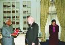 | Caption: | The President of India, Shri K R Narayanan receiving a copy of the Book Working a Democratic Constitution The Indian Experience from Mr Granville Austin at Rashtrapati Bhavan in New Delhi on Feb 01, 2000 |
