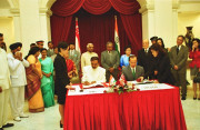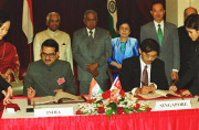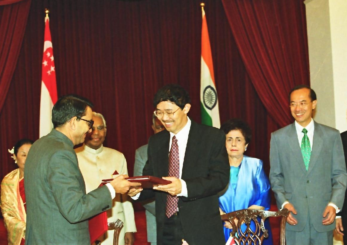 | Caption: | The President of India, Shri K R Narayanan during the Signing of Agreement on Task force in Field of Economic Cooperation in Singapore on Nov 10, 2000 |