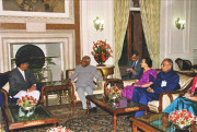 | Caption: | The Prime Minister of Nepal, HE Mr Sher Bahadur Deuba Dr Arzu Deuba calling on the President of India, Shri K R Narayanan at the Morning Room of Rashtrapati Bhavan in New Delhi on March 21, 2002 |
