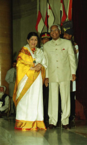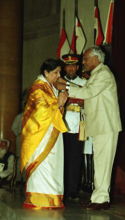 | Caption: | The President of India, Shri K R Narayanan presenting the Bharat Ratna to Lata Mangeshkar at the Darbar Hall of Rashtrapati Bhavan in New Delhi on March 21, 2001 |